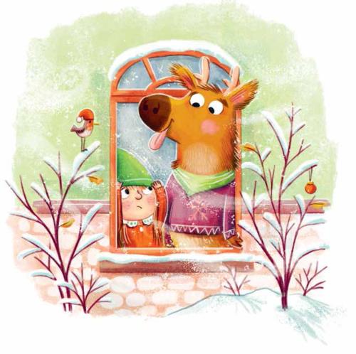 С неба валил снег. На школу Рождества, скрытую в долине между холмами и густыми лесами, опускались тяжёлые белые хлопья, залетая в открытое окно. Возле него стоял северный оленёнок Ромео. Вытянув шею и высунув язык, он пытался поймать языком самые крупные снежинки.