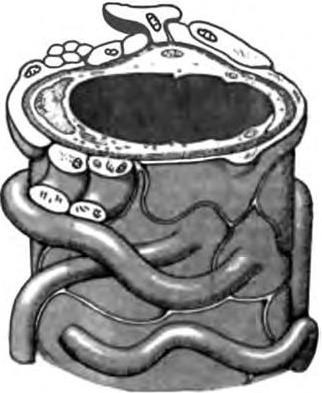 Рис. 1.8. Кровеносные сосуды, окружающие нервное волокно