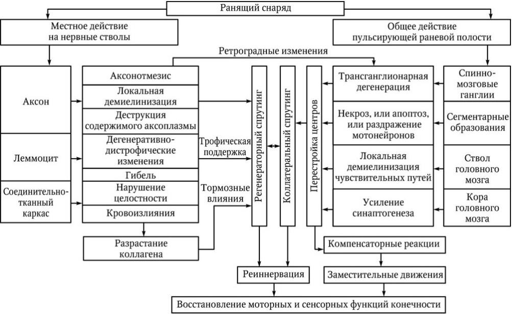 Схема 2.1. Патогенез огнестрельных невропатий и плексопатий