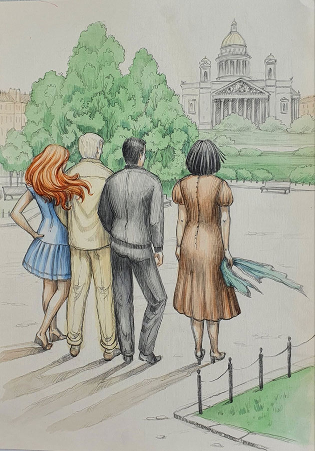 – Алло, Ева, привет, сегодня мой брат приезжает, хочешь с нами завтра в Исаакиевский собор, потом на колоннаду поднимемся, – тараторила она, смеясь, ничем не выдавая своей печали.