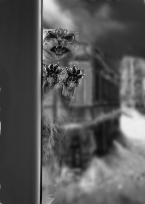 Свет был очень тусклым, но его хватало, чтобы увидеть серого кота, тело которого обвивалось вокруг ноги Марка, согревало, но было ясно, что если кот напряжется то, сломает ногу в два счета. Кот передними лапами мял бедро Марка, выпуская когти и мурча от удовольствия. В комнате стоял адский холод – форточка была раскрыта настежь. Кот был полностью увлечен своим делом и жмурил глаза, иногда нюхая воздух. Марк медленно потянулся за пистолетом. Будто почувствовав это, кот посмотрел на Марка змеиными глазами, его тело напряглось, и Марк почувствовал, что скоро его ноге придет конец, немедля более, он поднял пистолет и выстрелил в голову коту. Освободившись от длинного мягкого тела, он свернул его клубком и впихнул в форточку, захлопнув ее. Марка замутило, он отбросил куски черепа кота с матраса и почувствовал, что паника начинает охватывать его.