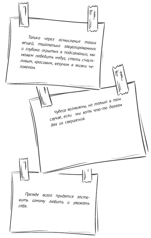 Только через осмысление таких вещей, тщательно завуалированных и глубоко скрытых в подсознании, мы можем победить недуг, стать счастливым, красивым, везучим в жизни человеком.