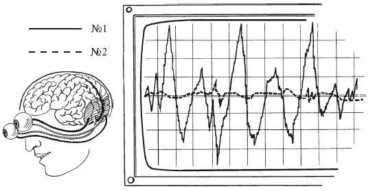 Потом таким же образом исследуем работу слухового центра. И замечаем ту же разницу, те же четкие закономерности.