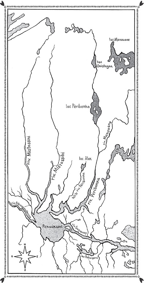 Теперь они построили город, но в те времена тут лежали песчаные отмели до самого горизонта. Перибонка, как и Ашуапмушуам и Мистассини, открывала путь на север. Она привела нас к местам охоты семейства Симеон.