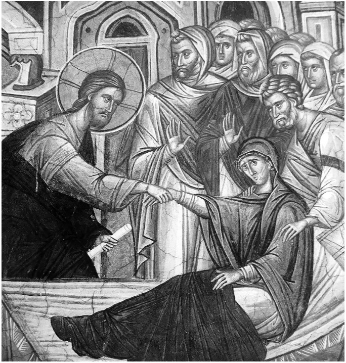 Исцеление Петровой тещи. Фреска. Монастырь Дечаны, Сербия. XIV в.