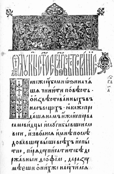 Начало Евангелия от Луки (напрестольное Евангелие сер. XVI века)