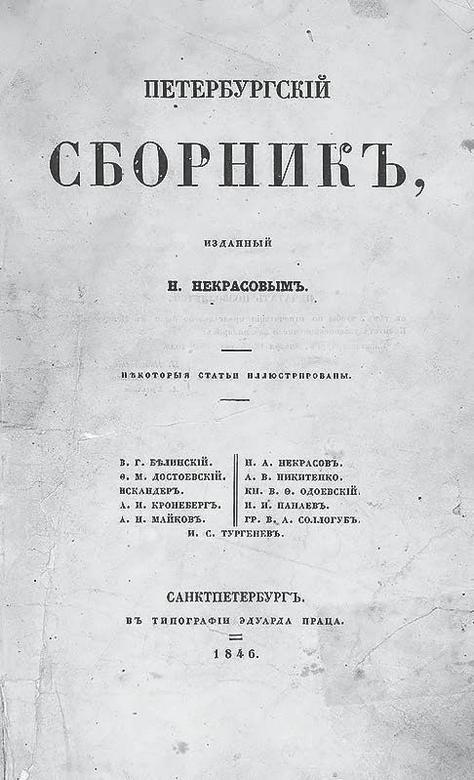 Титульный лист «Петербургского сборника» Н. Некрасова, в котором впервые был напечатан роман. 1846 г.