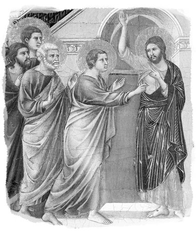 В одном из заключительных эпизодов этой истории, как она изложена в Евангелии от Иоанна, апостол Фома, отсутствовавший при первом явлении воскресшего Иисуса, отказывается поверить в Его воскресение. Восемь дней спустя Иисус вновь является группе апостолов; на этот раз Фома – среди них. Иисус показывает ему раны на Своем теле и говорит: Не будь неверующим, но верующим (Ин. 20:27). Фома восклицает: Господь мой и Бог мой! (Ин. 20:28).