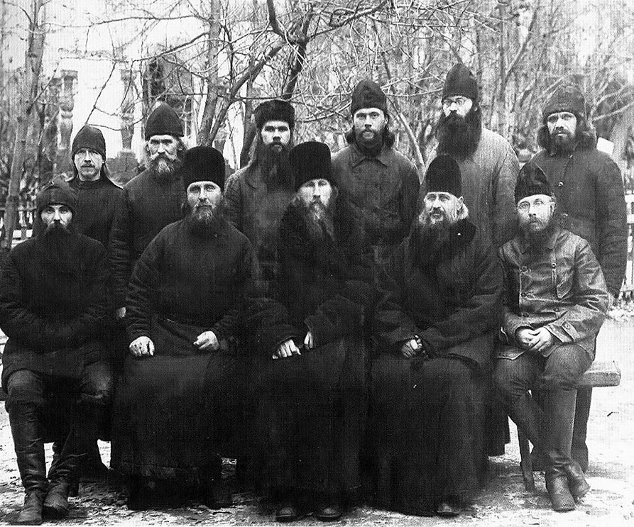 Архиепископ Евгений (Зернов), епископ Иларион (Троицкий), епископ Прокопий (Титов) и монашествующие в Соловецком лагере особого назначения. Фото из архива ЦАК МДА