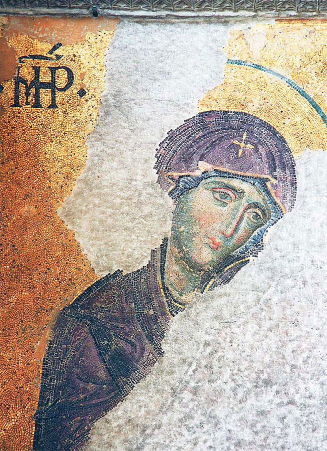 Божия Матерь. Деисис. Фрагмент мозаики в Соборе Святой Софии в Константинополе. Около 1261 г.