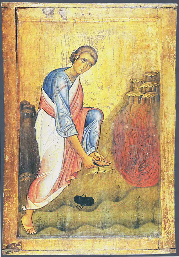 Моисей перед Неопалимой купиной. Икона. XIII в. Синай, Египет