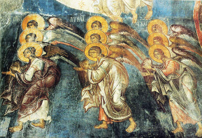 Этимасия. Ангелы, поклоняющиеся Христу. Фреска на своде диаконника. Первая четверть XIV в. Греция, Мистра, церковь Св. Димитрия