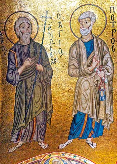 Апостолы Андрей и Пётр. Мозаика церкви Санта-Мария-дель-Аммиральо (Марторана) в Палермо. 1151/52 г.