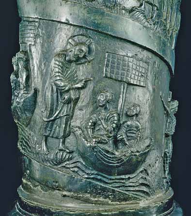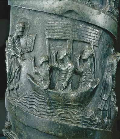 Призвание апостолов Петра и Андрея. Рельеф т. н. колонны Христа (колонны еп. Бернварда). XI в. (Музей-собор Вознесения Св. Марии в Хильдесхейме, Германия)