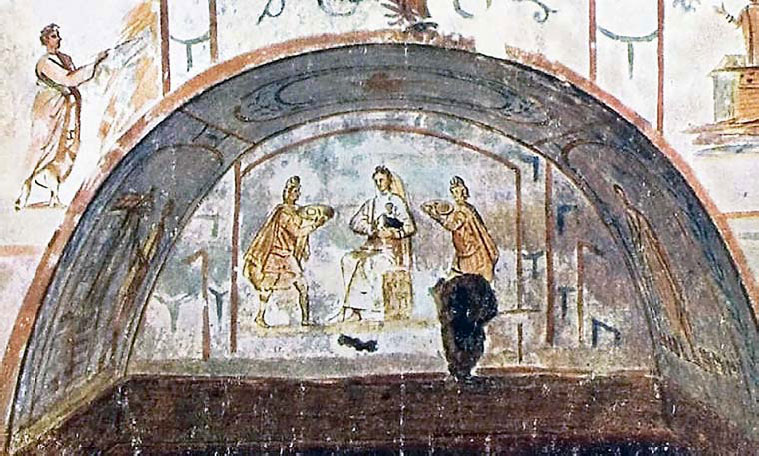 Рождество Христово. Фреска. 1-я пол. III в. Катакомбы Петра и Марцеллина, Рим, Италия