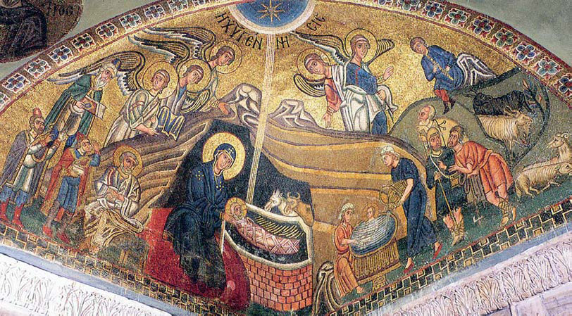 Рождество Христово. Византийская мозаика. Нач. XI в. Монастырь Осиос Лукас, Греция