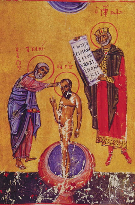 Крещение ап. Павла св. Ананией. Псалом 31.1. XI в. (Ath. Vatop. Cod. 760. Fol. 59)