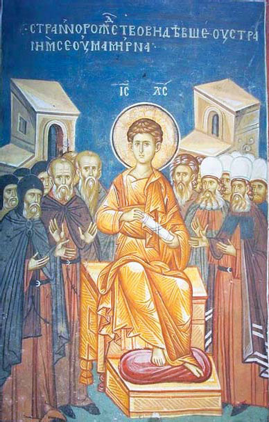 Отрок Иисус в Иерусалимском храме. Фреска. XIV в. Монастырь Высокие Дечаны, Сербия