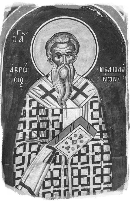 Святитель Амвросий Медиоланский. Фреска. XVI в