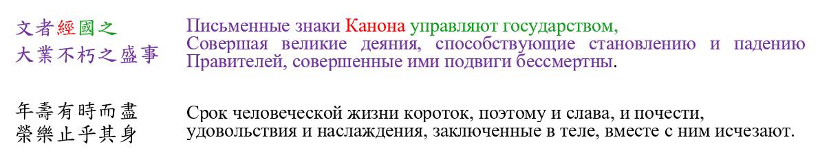 Для меня в этом одном знаке вэньян 經 «цзин» стоит «гиперссылка», открывающая портал во «весь вэньян» трактатов и канонов, начиная с прямой аллюзии на «Ши-цзин» (诗經, «Канон стихов»), а от него – ко всему «У-Цзин» (китайское «Пятикнижие»), куда входит и сам «Канон стихов», а ещё «И-цзин» (易經, «Книга перемен»), «Шу-цзин» (书經, «Книга преданий»), «Ли цзи» (礼记, «Книга церемоний», то есть «Записки о совершенном порядке вещей, правления и обрядов», регламентирующие общественные отношения, включая обряды и календарь), а так же «Чунь-цю» (春秋, летопись «Вёсны и осени», начал вести которую сам Конфуций).