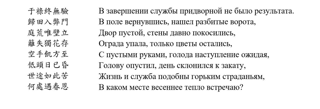 Второе прочтение, о котором говорил вам, уважаемые любознательные читатели, скорее всего, просто мой «вольный перевод по мотивам». Могло ли быть у этого стиха ещё одно прочтение, то самое, «между строк»? Все может быть, что и могло, для этого только надо будет уточнить, когда у 花 «цветка» появилось значение «рана»? Возможно, когда-нибудь филологи дадут ответ на этот вопрос, а сейчас можете просто сравнить два варианта «считывания информации» по контексту – вполне может быть, что его докладную записку могли услышать и таким образом: