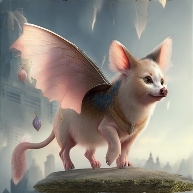 Зверушка была странной, с гибким телом кошки, небольшим пузиком, огромными ушами, и маленьким вздёрнутым пятачком. На его спине трепыхались светло-розовые крылышки, а хвост был очень длинным, с пушистой кисточкой на конце.