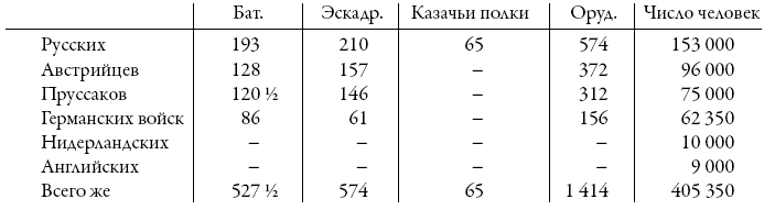 Всего же в Главной союзной армии при открытии похода находилось: