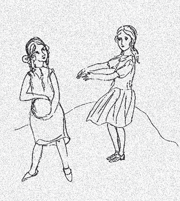 Вечером все сидели за праздничным столом в Спасоглинищевском. А когда гости ушли, Аля попросила кусочек торта. Утром она вышла во двор со сверточком, в котором были две конфеты, кусочек торта и яблоко. Оля была очень рада, она даже обняла Алю и сказала, что она настоящий друг. И сразу же все съела. А потом девочки играли и играли. Мяч без устали отскакивал то от стенки, то от земли.