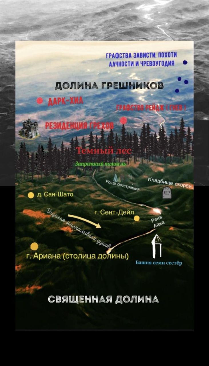 Переправившись через русло реки, мы направились в сторону рощи, все ближе подходя к темному лесу. Дженнифер клинком Морганы, который бабушка называла Атам, рубила ветви растительности, помогая нам не выколоть глаза и не расцарапать лицо окончательно. Ветер усилился, так как мы были в районе запретного туннеля, а из него всегда вырывался необузданный поток воздуха. Туннель служил проходом в потустороннюю долину … Долину Грешников.