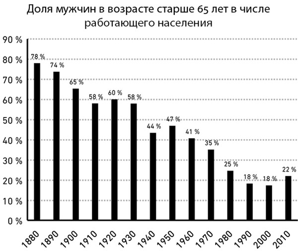 Перед Второй мировой войной большинство американцев работали до самой смерти. Таковы были их ожидания и реальность. Вплоть до 1940-х годов мужчины в возрасте 65 лет и старше составляли свыше 50 процентов всех трудовых ресурсов.