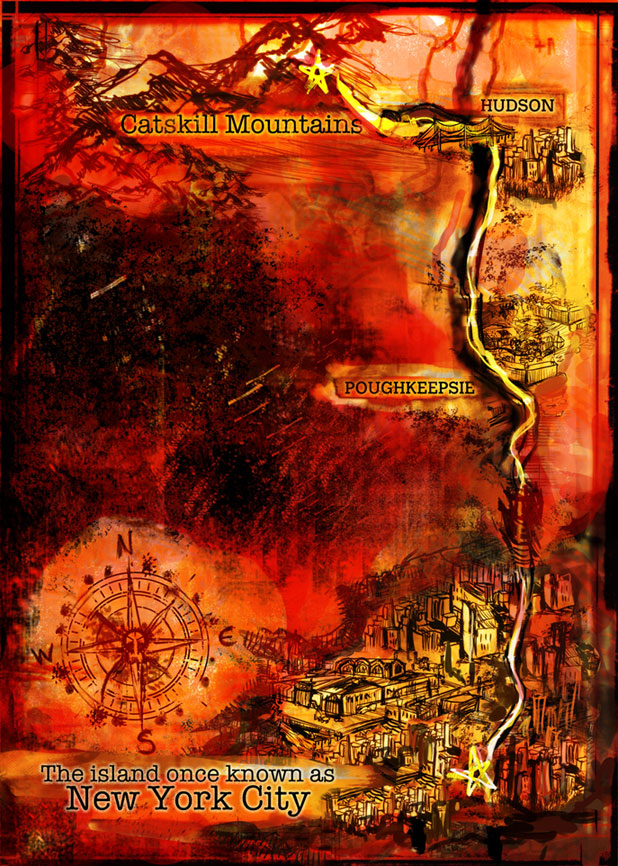 I stop and turn, taking in the vista: the view is amazing. I’d always thought we had a great view from Dad’s house, halfway up the mountain, but from here, up top, it is spectacular. Mountain peaks soar in every direction, and beyond them, in the distance, I can even see the Hudson River, sparkling. I also see the winding roads that cut their way through the mountain, remarkably intact. Probably because so few people ever come up here. I’ve never, in fact, seen a car, or any other vehicle. Despite the snow, the roads are clear; the steep, angular roads, basking in the sun, lend themselves perfectly to drainage, and amazingly, much of the snow has melted off.