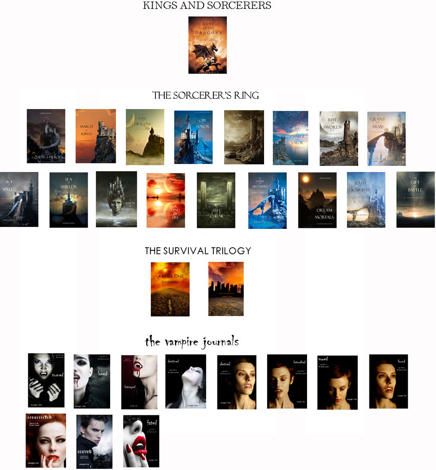 TURNED (Book #1 in the Vampire Journals), ARENA ONE (Book #1 of the Survival Trilogy) and A QUEST OF HEROES (Book #1 in the Sorcerer’s Ring) and RISE OF THE DRAGONS (Kings and Sorcerers – Book #1) are each available as a free download!