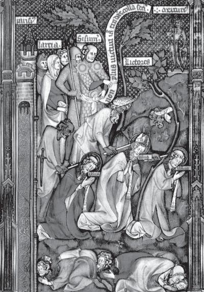 Мученичество Св. Дионисия и его сподвижников. Миниатюра. 1387