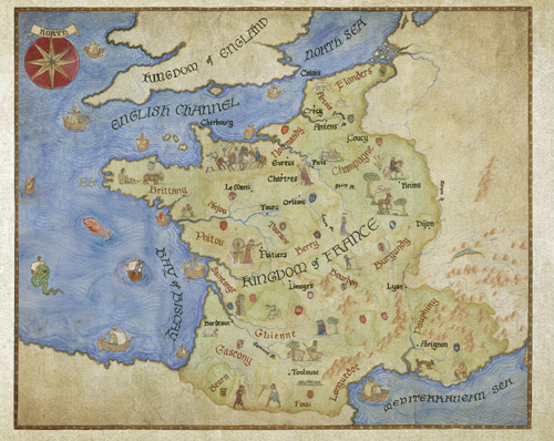 ‘Horrible, Madam, quite appalling,’ replied Robert of Artois. ‘There was a storm to make you bring up your guts and your soul. I thought my last hour had come and began to confess my sins to God. Fortunately, there were so many that we’d arrived before I’d had time to recite the half of them. I’ve still got sufficient for the return journey.’