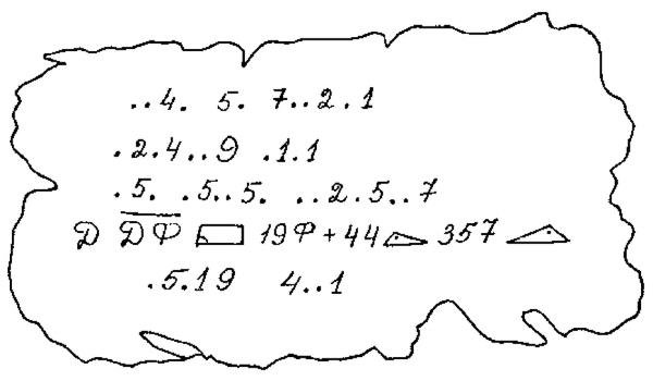 Изидор так и сяк рассматривал клочок бумаги, испещренный какими-то цифрами, точками и значками. Вот что он увидел: