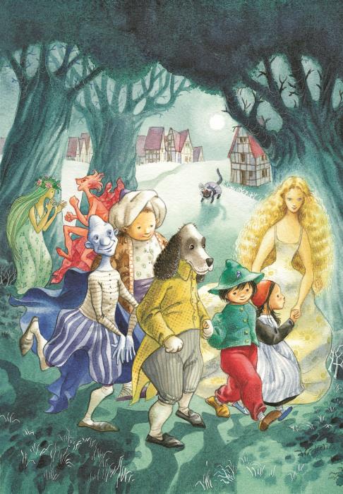 Неслышно распахнулись створки окна, и один за другим все выскользнули на ночную морозную улицу. И тут обнаружили, что им не холодно: фея одела их на свой вкус. В её сказочном сундуке хранились всякие наряды.