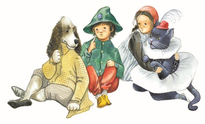 А кошка Тилетта в костюме, усыпанном блёстками, словно звёздами, в ладных сапожках и шляпке с перьями вилась вокруг Тильтиля и Митиль, ластясь и намяукивая на ухо девочке ласковые слова.