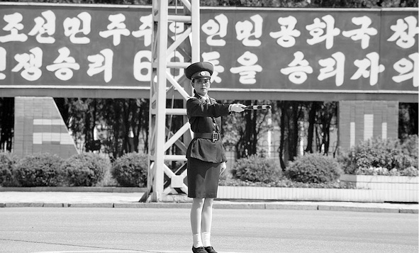 По просьбам трудящихся: а не сделать ли нам календарь с северокорейскими регулировщицами дорожного движения? Желательно снятыми на фоне пафосной пропаганды, посвященной Освободительной отечественной войне (как называют в КНДР Корейскую войну).