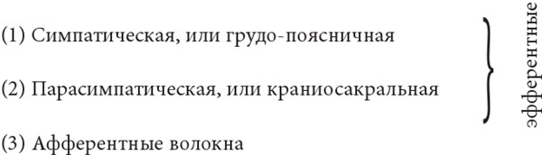 Наконец, третий раздел состоит из всех афферентных вегетативных волокон, переносящих импульсы от внутренних органов к центру.