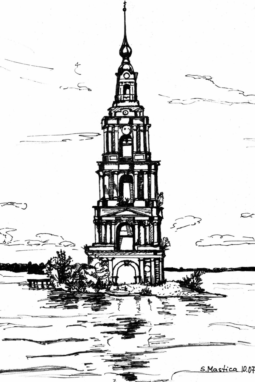 Одиночество. Никольская колокольня. Волга. Город Калязин.