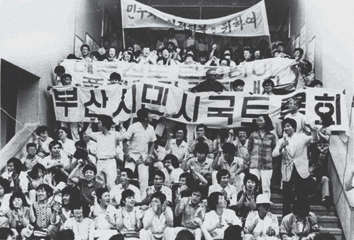 В первой половине 1980-х годов так называемые «Дело Пурим» и «Дело о поджоге в Американском культурном центре» на корню обрубили ростки и подорвали основание группы активистов движения за демократизацию в Пусане, которое и без того было не очень-то прочным. Однако люди, которые тогда попали в тюрьму, были затем освобождены в полном составе, и они твердо закрепились в нескольких организациях и начали активно действовать. Основание расширялось. Возвращалась энергичность.