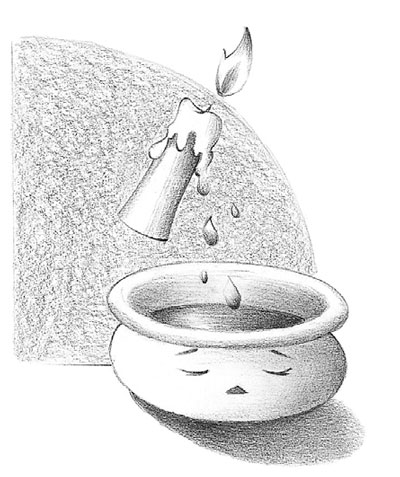 Рокси взяла мисочку Соли Морской и протянула ее Нине. Девочка Шестой Луны зажгла свечу и поставила ее в мисочку. Дождавшись, когда донышко покроется расплавленным воском, она достала уголек из камина, раскрошила его и перемешала с воском. Мисочка неожиданно подпрыгнула и произнесла: