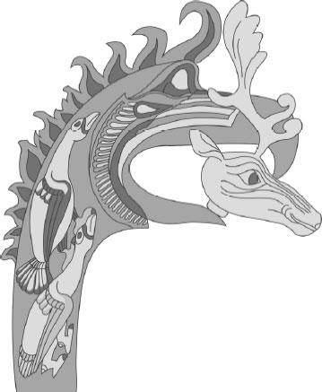 Деревянное навершие. Прорисовка. V в. до н. э. Пазырыкские курганы, Алтай. Рисунок Глафиры Пинхасовой.