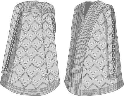 Мужской кафтан. Находка из Катандинского кургана. Алтай. Рисунок Глафиры Пинхасовой.