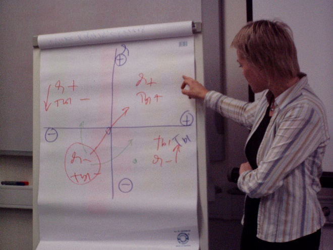 Что касается способности участников увидеть ситуацию и проанализировать ее – это вполне и по силам. На фото участница работает с матрицей с точки зрения перемещения переговоров из одного поля в другое.