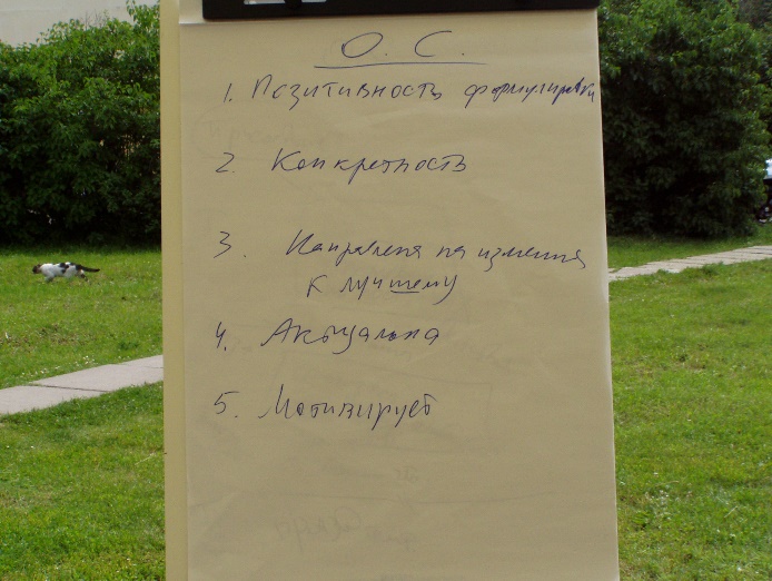На этом фото – флипчарт с результатом работы группы над техникой обратной связи (О.С.) Эти принципы обратной связи стоит воспроизвести в тексте. .) При этом кот на заднем плане – очевидный артефакт ))…