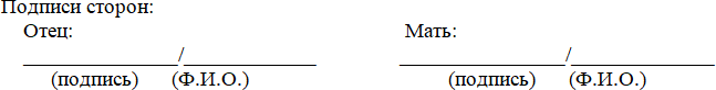 2.2. Родители установили, что они в равной степени несут ответственность за воспитание и развитие детей, обязаны заботиться об их здоровье, физическом, психическом, духовном и нравственном развитии.