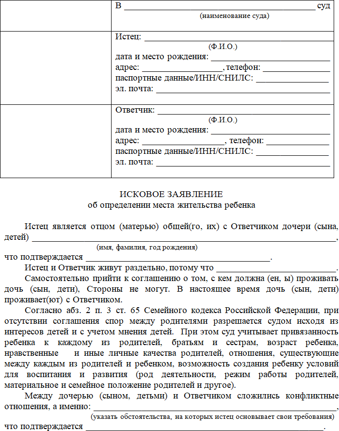 Приложение № 3. Исковое заявление об определении места жительства ребенка