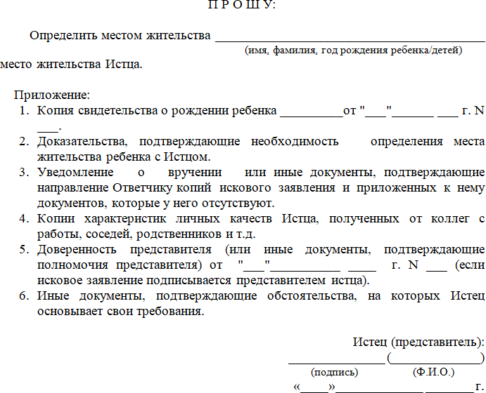2. Место жительства ребенка (детей) ____________________________________________________________________________ (фамилия, имя, отчество ребенка/детей) "___"__________ ___ года рождения ("___"__________ ___ года рождения) (свидетельство о рождении серии _______ N ________, выданное _____________) определить с Истцом.