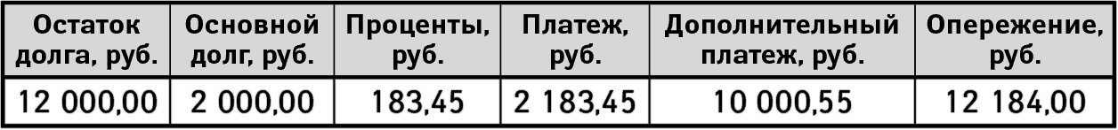 Наконец-то закрываем последний кредит за один месяц – вносим 12 184 руб. (табл. 1-14).